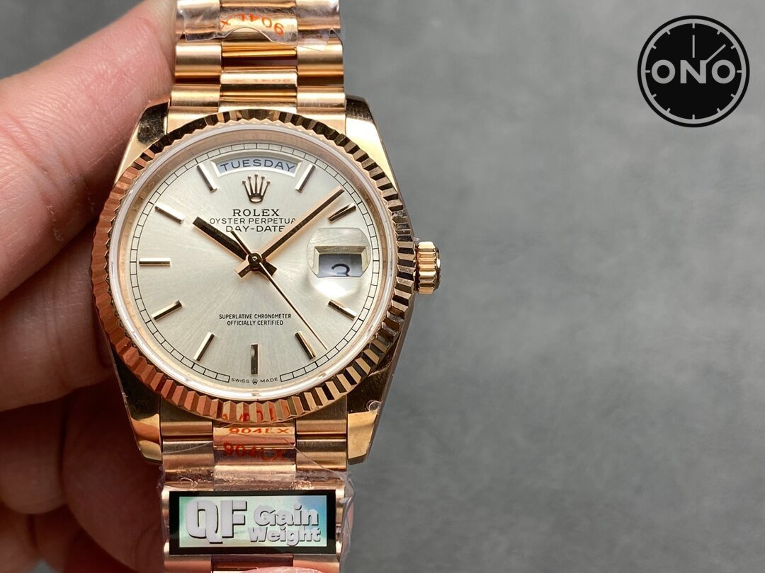ONO QF Rolex Day-Date 128235 Asian 2836 36mm Off-White Dial 18k Rose Gold Case Gain Weight