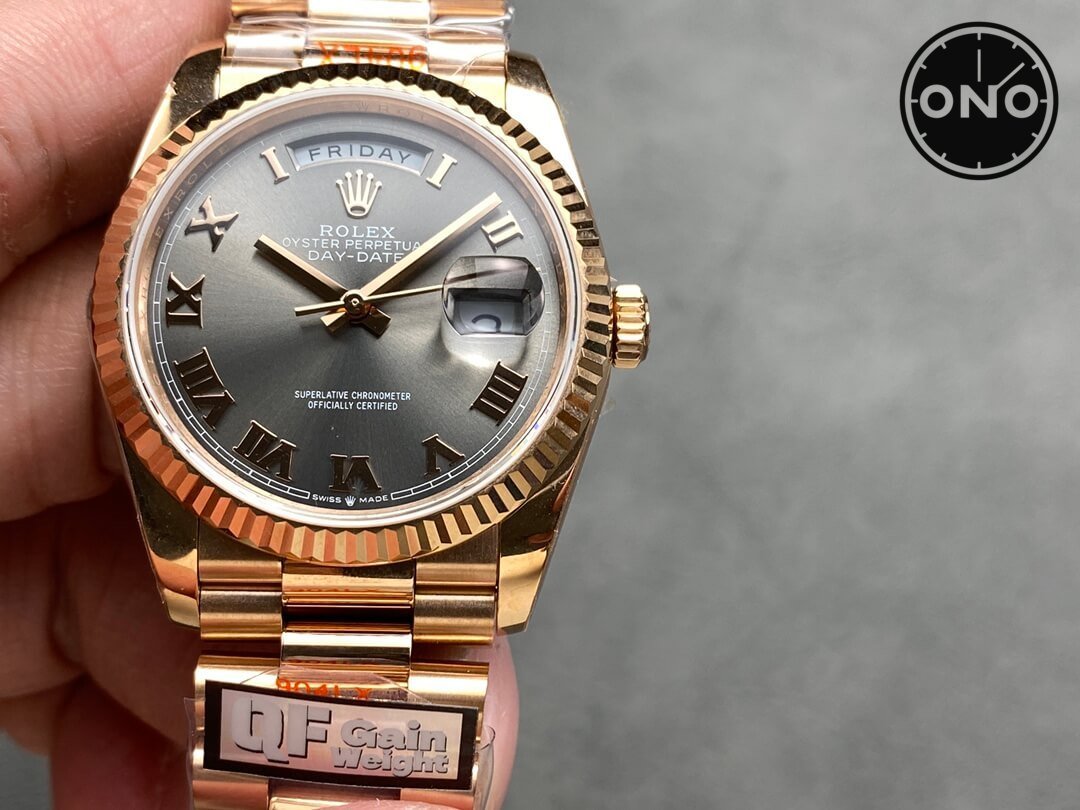 ONO QF Rolex Day-Date 128235 Asian 2836 36mm Slate Gray Dial 18k Rose Gold Case Gain Weight