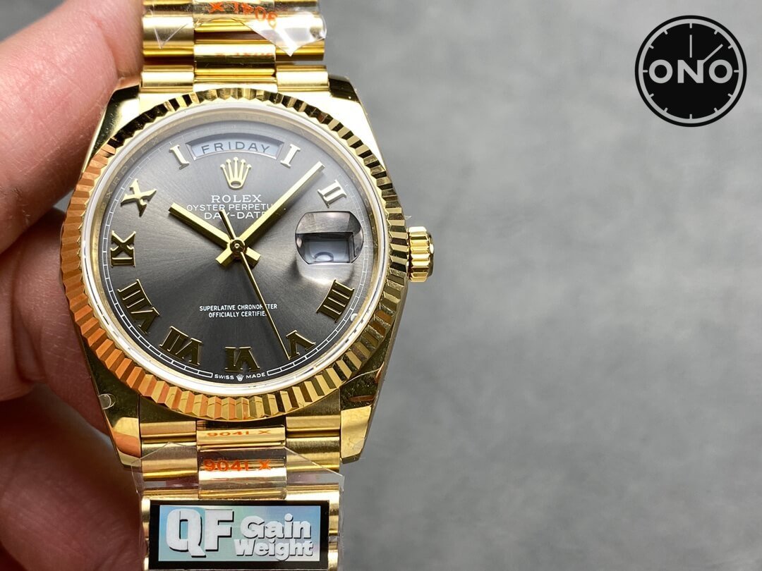 ONO QF Rolex Day-Date 128238 Asian 2836 36mm Slate-Gray Dial 18k Yellow Gold Case Gain Weight