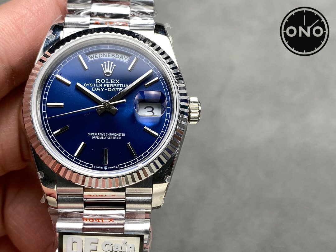 ONO QF Rolex Day-Date 128239 Asian 2836 36mm Light Blue Dial 18k White Gold Case Gain Weight